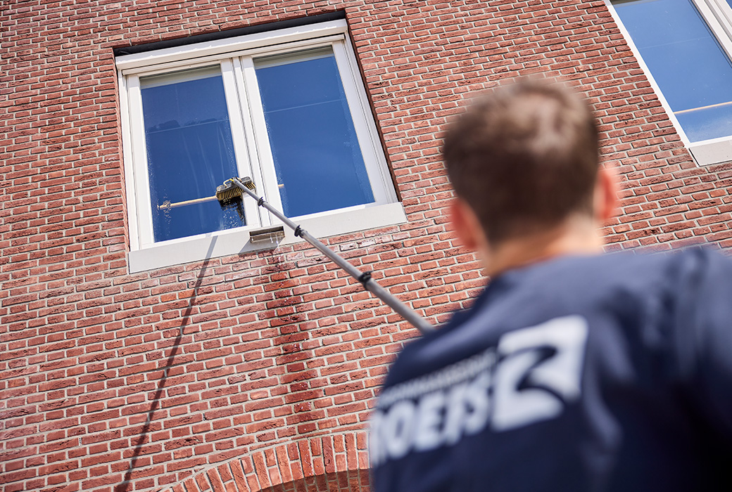We werken vaak met gezuiverd water. Dit laat geen strepen achter en is vriendelijk voor glas, kozijnen en beplanting. Waar nodig gebruiken we handmatige technieken en maken we alles veilig en schoon.